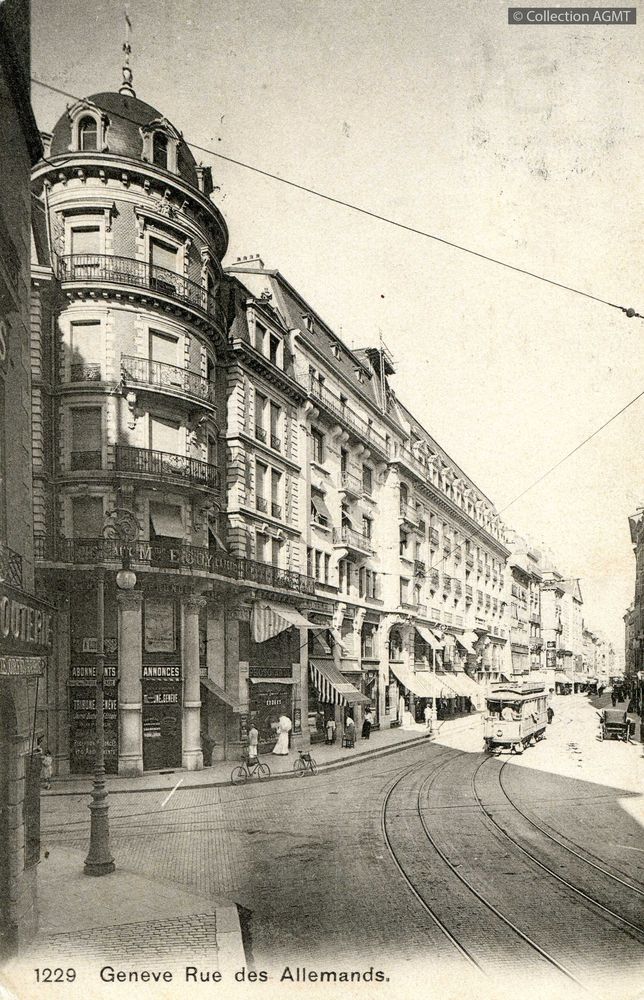 Genève : rue des Allemands [document graphique à deux dimensions] . - Berne : Edition phot. Franco-Suisse, [ca 1905] . - 1 carte postale : noir et blanc ; 14 x 9 cm. Langues : Français (fre)