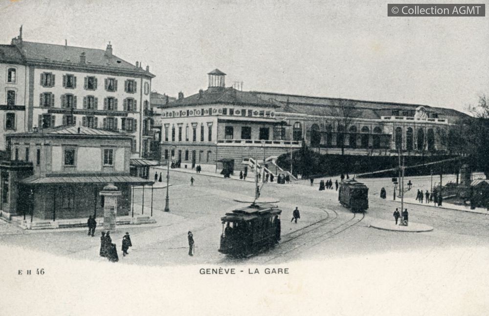 Genève : la gare [document graphique à deux dimensions] . - [S.l.] : EH, [ca 1904] . - 1 photo : noir et blanc ; 9 x 14 cm. Langues : Français (fre)