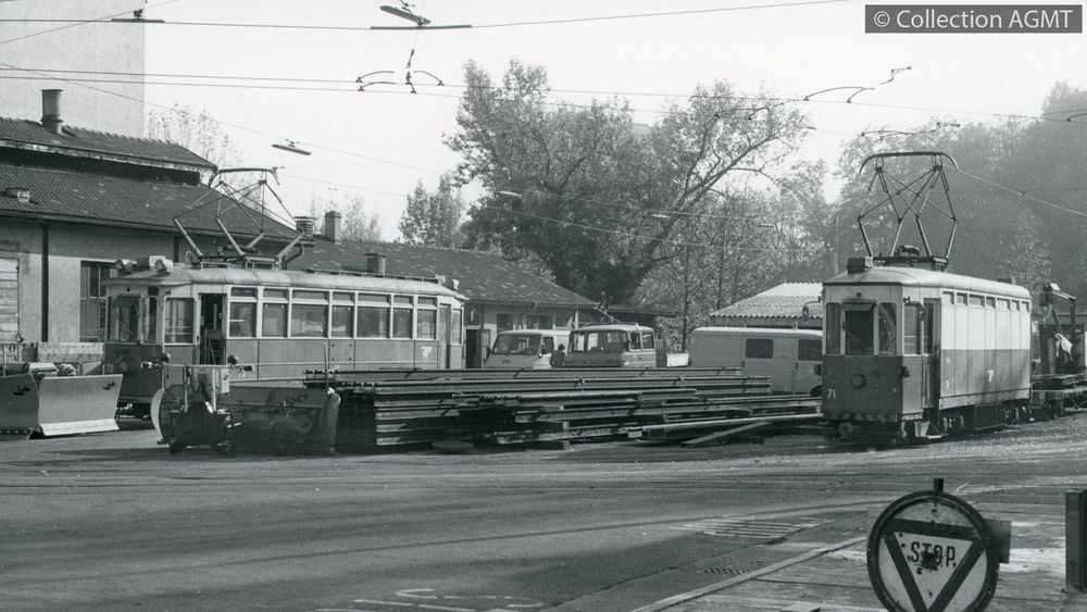 3144(494.42)_CGTE_1956-04.jpgImage JpegL'automotrice 67, préservée par l'AGMT, stationne dans la zone Arve du dépôt de la Jonction en compagnie du wagon-grue et des automotrices 71 et 72 des TPG / François Chapuis