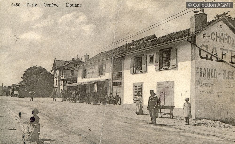 [Année] 1913Index. décimale : 4141 Tramway et métro léger interurbain et vicinal - véhicule - service régulier, transport de voyageur Perly (canton de Genève) : café de la frontière Franco-Suisse [document graphique à deux dimensions] . - [S.l.] : [s.n.], [ca 1913] . - 1 carte postale : noir et blanc ; 10 x 14 cm.