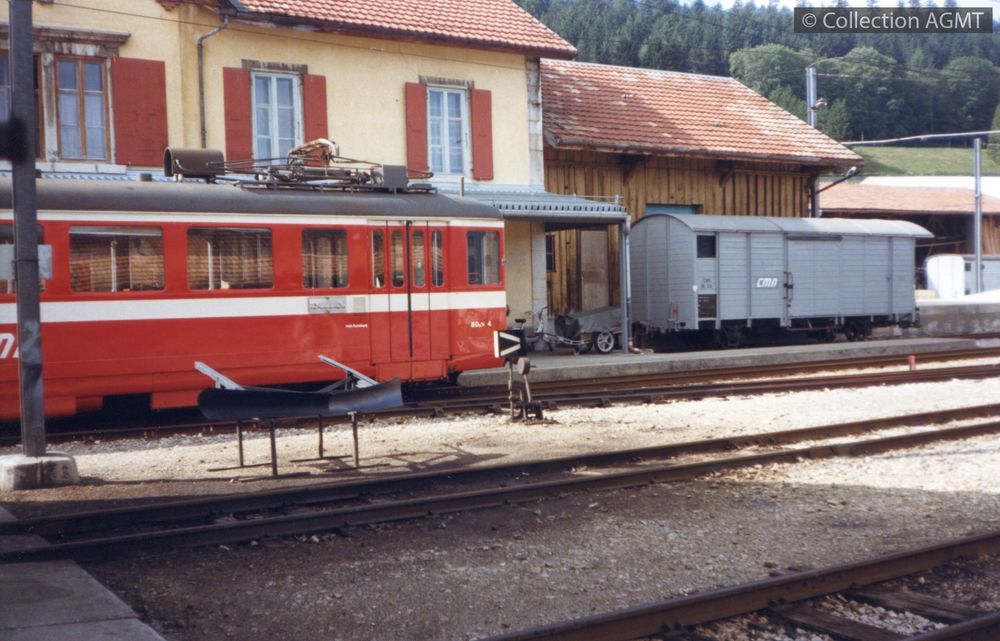4341(494.43)_CMN_1983-09.jpgImage JpegAssurant une course à destination de La Chaux-de-Fonds, une automotrice BDe 4/4 des CMN marque l'arrêt en gare de La Sagne / Gaston Guignard
