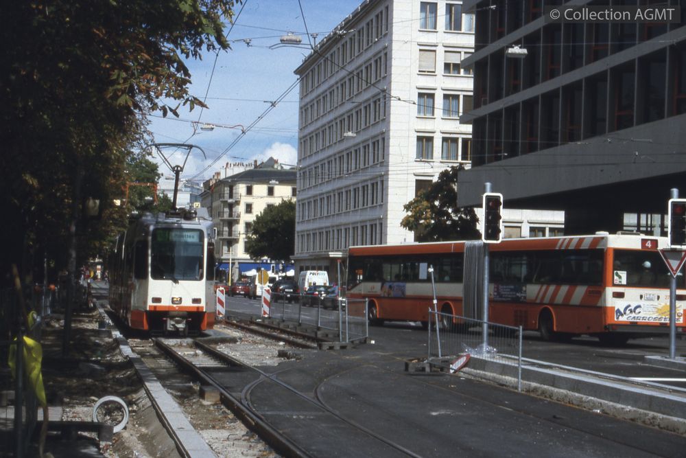 3123(494.42)_TPG_2003-29_d.jpgImage JpegAu carrefour entre la rue du Stand et le boulevard Georges-Favon, les appareils de voie nécessaires à la séparation des futures lignes de tram 13 et 16 des TPG sont en cours de pose / Gaston Guignard