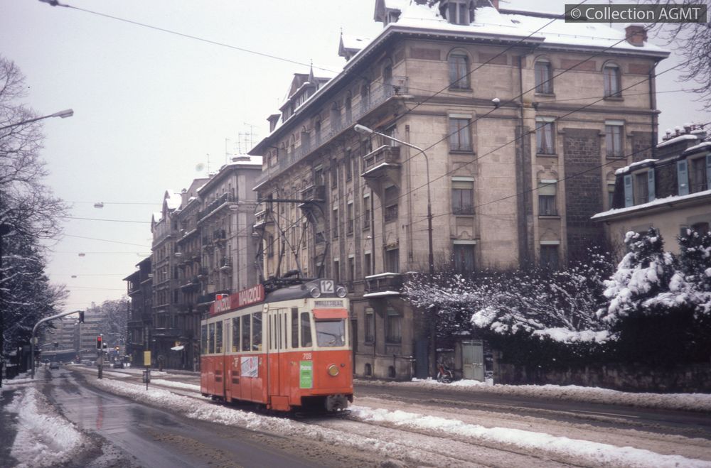 Affiner la recherche Interroger des sources externesEn service sur la ligne 12 à destination de Moillesulaz, l'automotrice 709 des TPG quitte l'arrêt "Amandolier" / François Chapuis