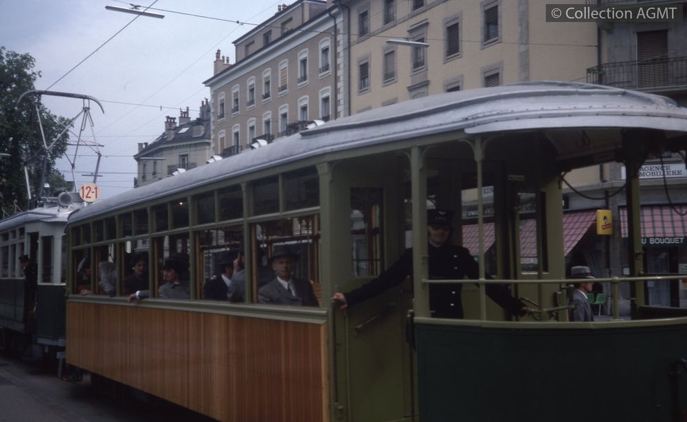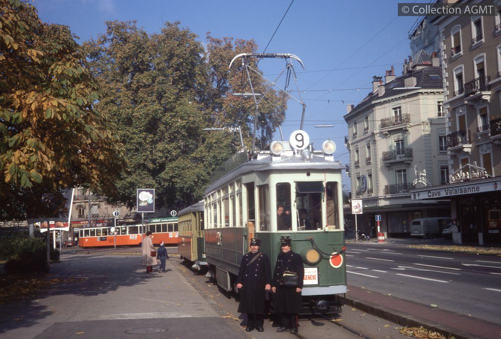 PermalinkPermalinkLe personnel AGMT en uniforme historique CGTE ou TPG pose devant la remorque 363 stationnée à la Place-Neuve / Florian Rahm