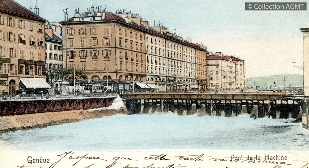 Genève : pont de la Machine [document graphique à deux dimensions] . - Montreux : Gaspard Lips, [ca 1904] . - 1 carte postale : colorisée ; 9 x 14 cm. - ( GLM; 11) . Langues : Français ( fre) |  |