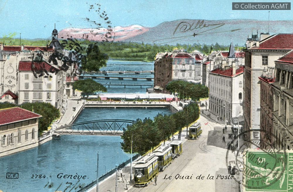 [Année] 1905Index. décimale : 4141 Tramway et métro léger interurbain et vicinal - véhicule - service régulier, transport de voyageur Genève : le quai de la Poste [document graphique à deux dimensions] . - Paris : Aqua photo, [ca 1905] . - 1 photo : couleur ; 9 x 14 cm.