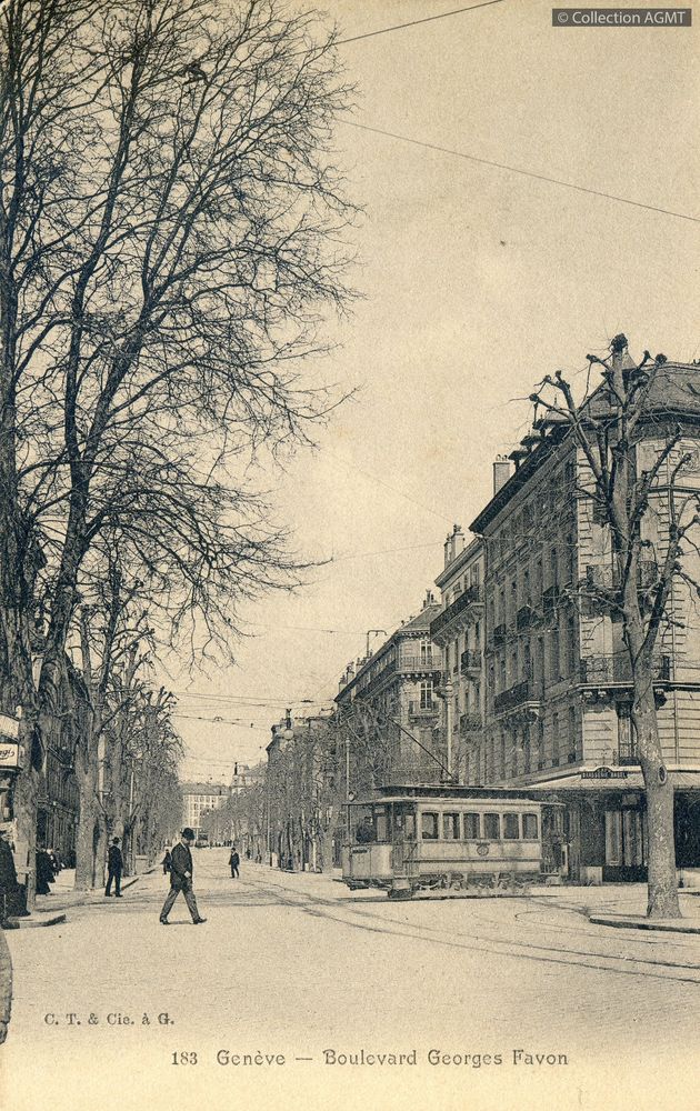 [Année] 1905Index. décimale : 3141 Tramway et métro léger urbain - véhicule - service régulier, transport de voyageur Genève : boulevard Georges Favon [document graphique à deux dimensions] . - Genève : C.T. & cie, [ca 1905] . - 1 carte postale : noir et blanc ; 14 x 9 cm. - (C.T. & cie; 183) .