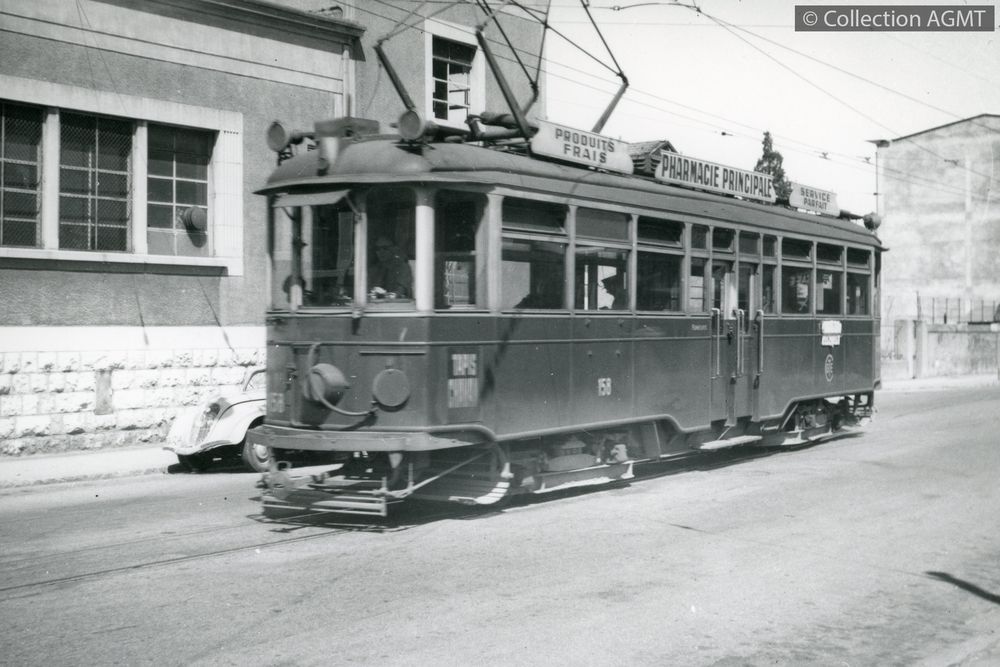 3141(494.42)_CGTE_1958-26.jpgImage JpegL'automotrice 158 de la CGTE stationne sur la place de la gare de Chêne-Bourg dans l'attente de son prochain service sur la ligne 12 / Jeremy Wiseman