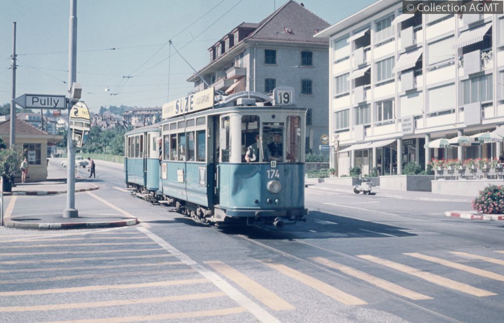 PermalinkUn convoi de la ligne 19 des TL, formé de l'automotrice 174 et de la remorque 158, circule à Pully en direction de Lutry / Jeremy Wiseman