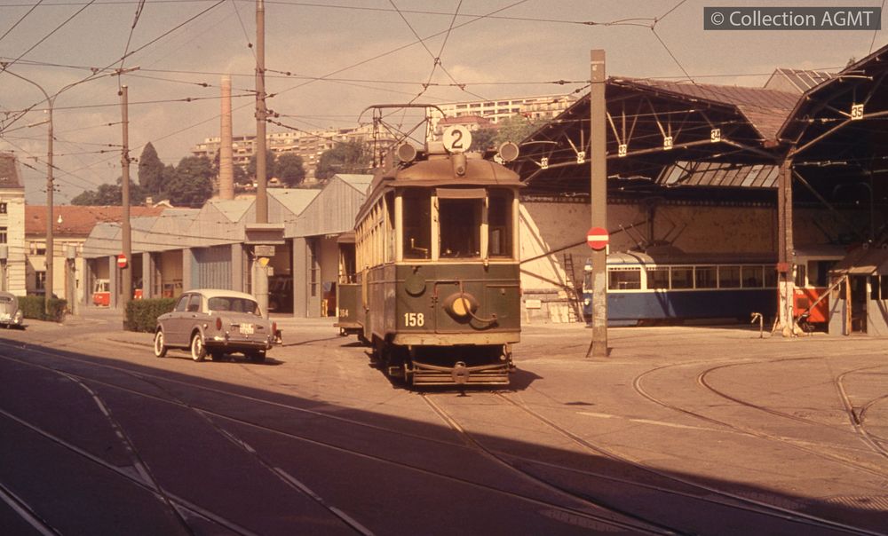 PermalinkAu dépôt de la Jonction, l'automotrice 158 de la CGTE manoeuvre la remorque 364 / Richard J.S. Wiseman