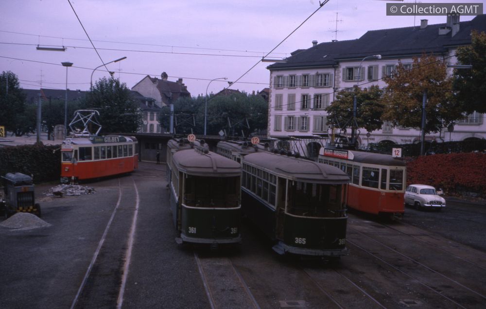 PermalinkPermalinkPermalinkLigne 12, rondeau de Carouge, deux convois CGTE garés dans la boucle avec les motrices 62 et 69 / Jean-Marc Bongni