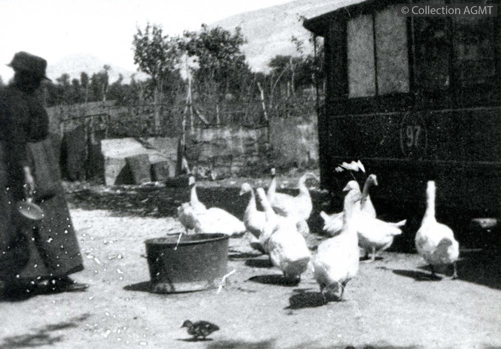 [Année] 1912Résumé : Photo de l'automotrice 97 des TS utilisée comme poulailler à l'entrée de Plan-les-Ouates aux environs de 1912.