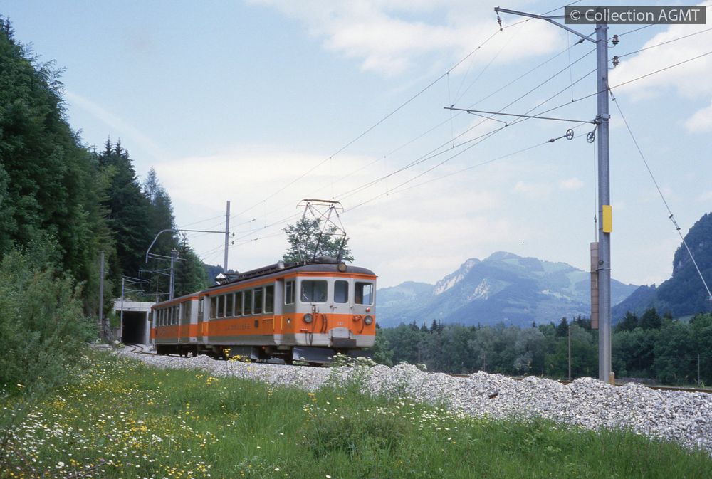 [Ligne] MontbovonIndex. décimale : 3148 Tramway et métro léger urbain - véhicule - préservé, en service historique L'automotrice 125, en circulation spéciale en Gruyère, stationne en gare d'Enney [document graphique à deux dimensions] / Eric Rahm, Photographe . - Genève : Association genevoise du musée des tramways, 1997 . - 1 photo : couleur ; 11 x 16 cm.