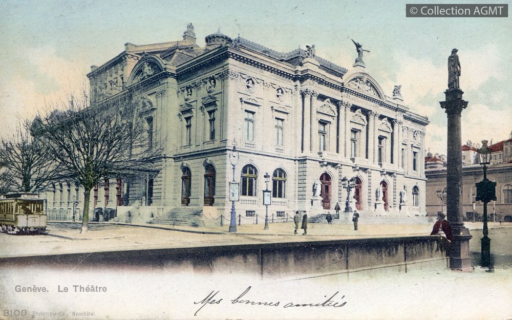 [Année] 1905Index. décimale : 3141 Tramway et métro léger urbain - véhicule - service régulier, transport de voyageur Genève : le théâtre [document graphique à deux dimensions] . - Neuchâtel : Phototypie, [ca 1905] . - 1 photo : couleur ; 9 x 14 cm.
