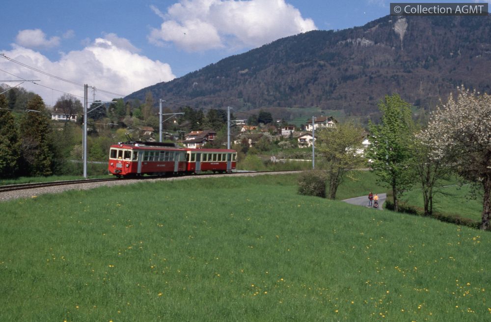 PermalinkVoiture pilote Bt 222 en tête un convoi des CEV qui circule en direction de Blonay arrive à la halte de Hauteville / Jeremy Wiseman