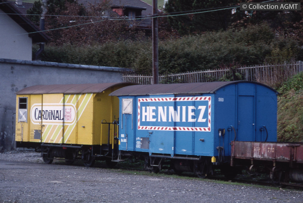 4342(494.41)_MOB_1980-01_d.jpgImage JpegWagons couverts Gk 560 et 503 du MOB, en livrée publicitaire "Henniez" et "Cardinal" respectivement / François Chapuis