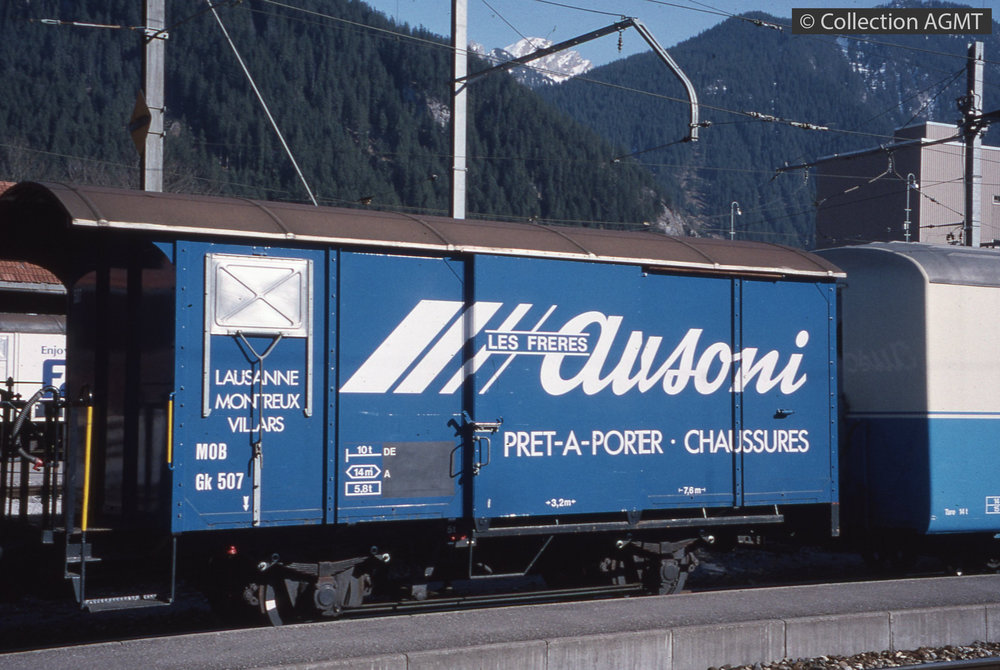 4342(494.24)_MOB_1997-01_d.jpgImage JpegWagon couvert Gk 507 du MOB, en livrée publicitaire "Les frères Ausoni" à Zweisimmen / François Chapuis