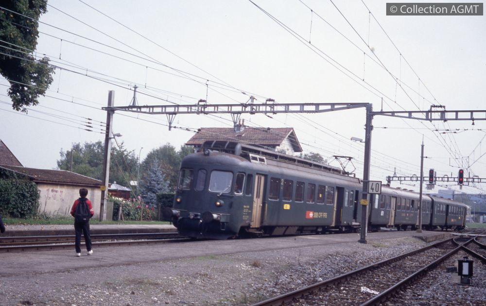 Affiner la recherche Interroger des sources externesUn convoi CFF pour Genève, formé d'une automotrice BDe 4/4, d'une voiture et d'une voiture-pilote, quitte la gare de La Plaine / Jeremy Wiseman