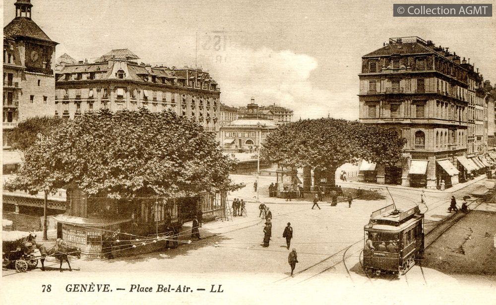 Genève : place Bel-Air [document graphique à deux dimensions] . - Paris : Lévy et Neurdein réunis, [ca 1905] . - 1 carte postale : noir et blanc ; 9 x 14 cm. Langues : Français (fre)