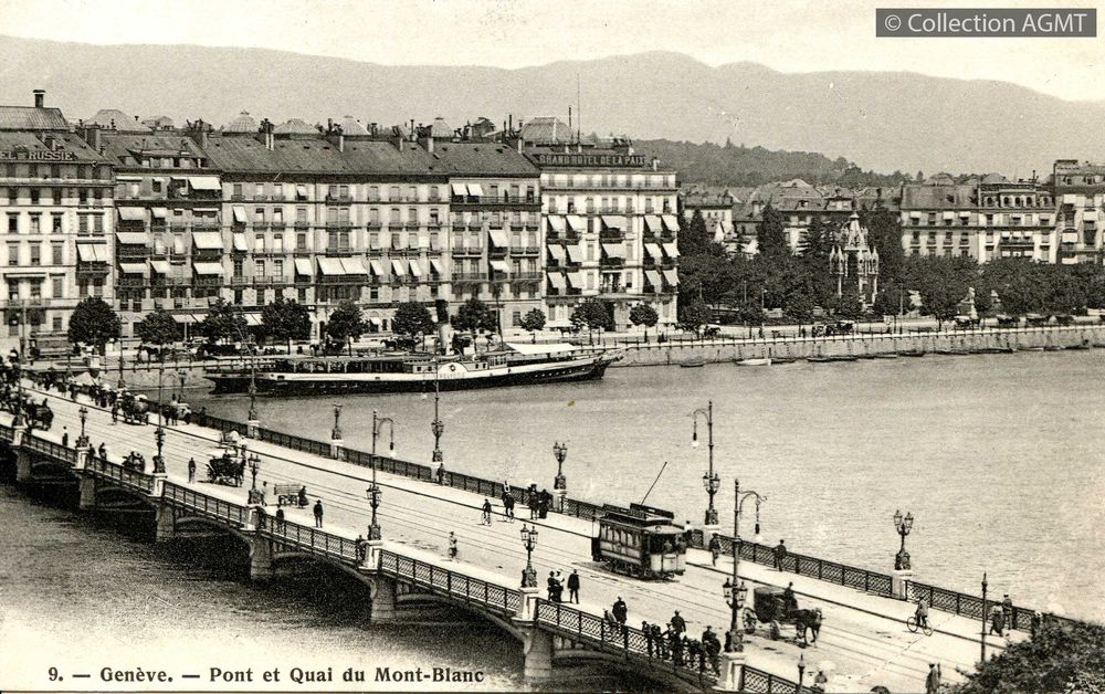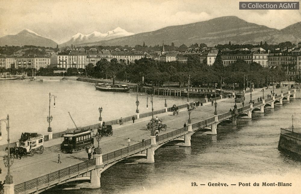 [Année] 1905Index. décimale : 3141 Tramway et métro léger urbain - véhicule - service régulier, transport de voyageur Genève : pont du Mont-Blanc [document graphique à deux dimensions] . - Genève : A. Boru, [ca 1905] . - 1 carte postale : noir et blanc ; 9 x 14 cm.