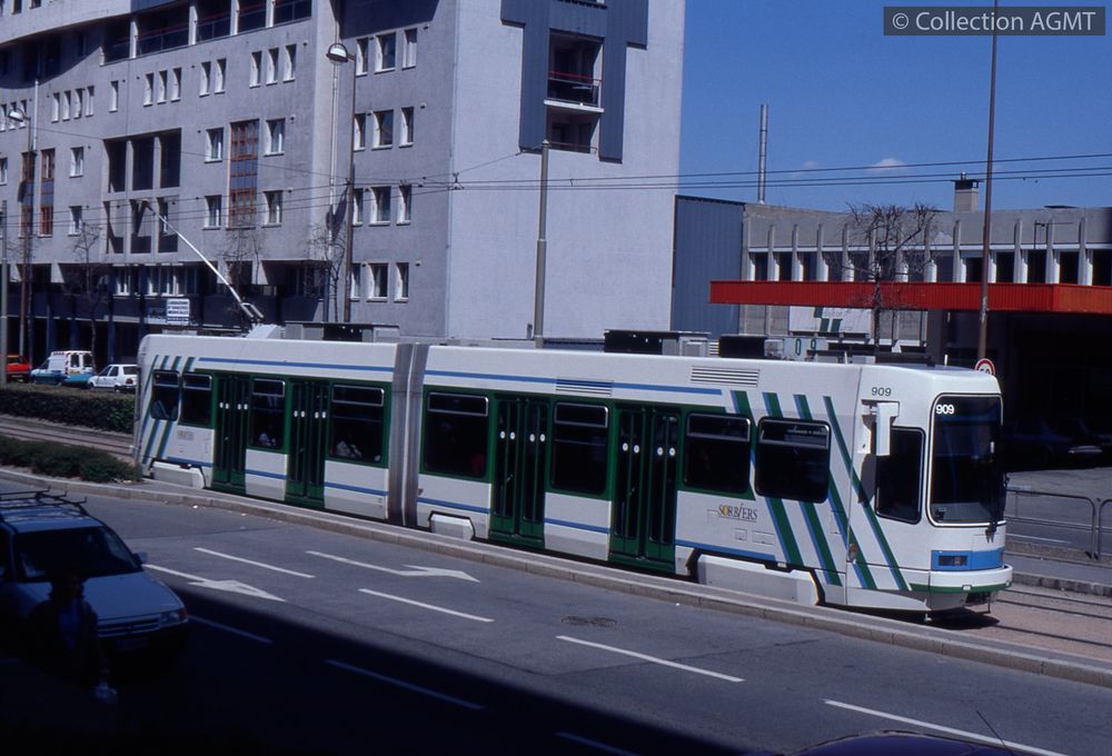 Affiner la recherche Interroger des sources externesL'automotrice 913 de la STAS pousse la 910, en panne, sur le site propre de la rue Bergson à St-Etienne / Jeremy Wiseman