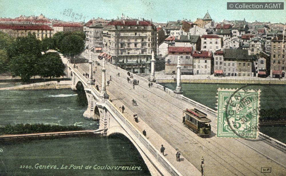 [Année] 1905Index. décimale : 3141 Tramway et métro léger urbain - véhicule - service régulier, transport de voyageur Résumé : Achetée 2,99 Euros sur Delcampe en mai 2013. Genève : le pont de la Coulouvrenière [document graphique à deux dimensions] . - Paris : Aqua photo, [ca 1905] . - 1 photo : couleur ; 9 x 14 cm.