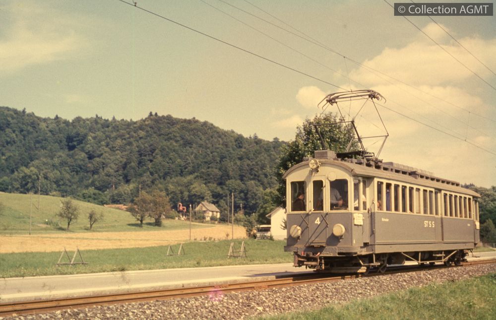 [Compagnie] StSSIndex. décimale : 4141 Tramway et métro léger interurbain et vicinal - véhicule - service régulier, transport de voyageur L'automotrice 4 du StSS circule dans la campagne à proximité de Beringen [document graphique à deux dimensions] / Jeremy Wiseman (1933-2022), Photographe . - [S.l.] : [s.n.], [ca 1970] . - 1 photographie : noir et blanc ; 9 x 13 cm.