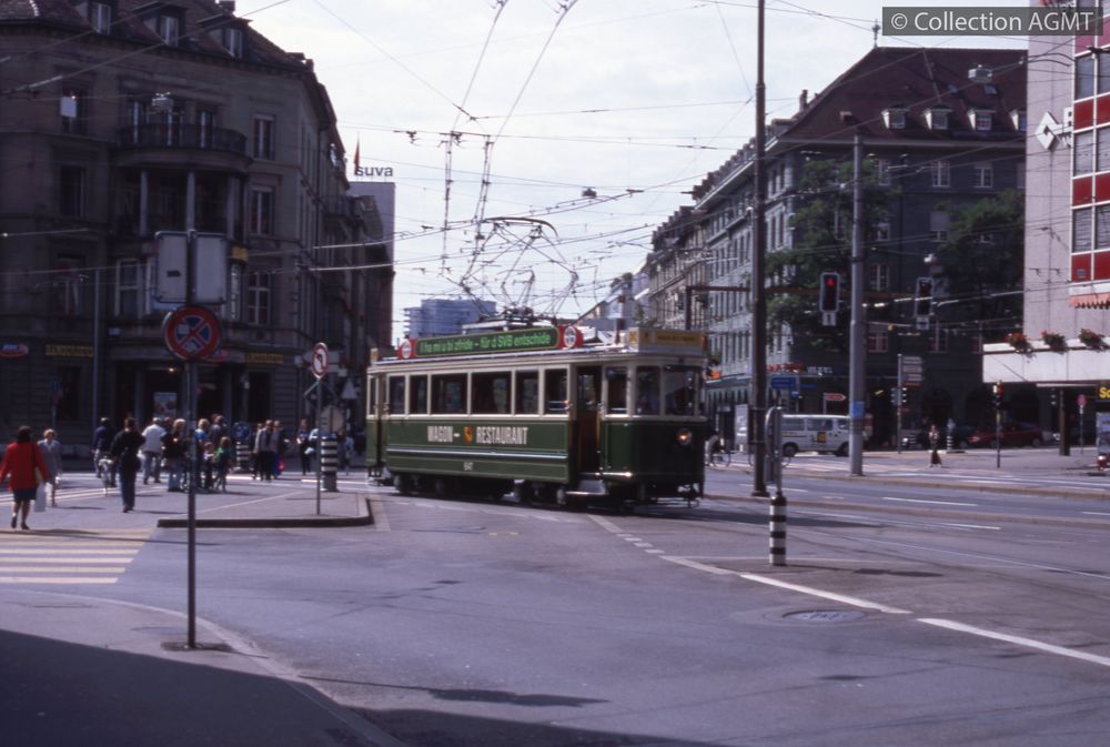 PermalinkPermalinkL'automotrice 647 "Wagon-Restaurant" des SVB débouche de l'Hirschengraben sur la Bubenbergplatz / Jeremy Wiseman