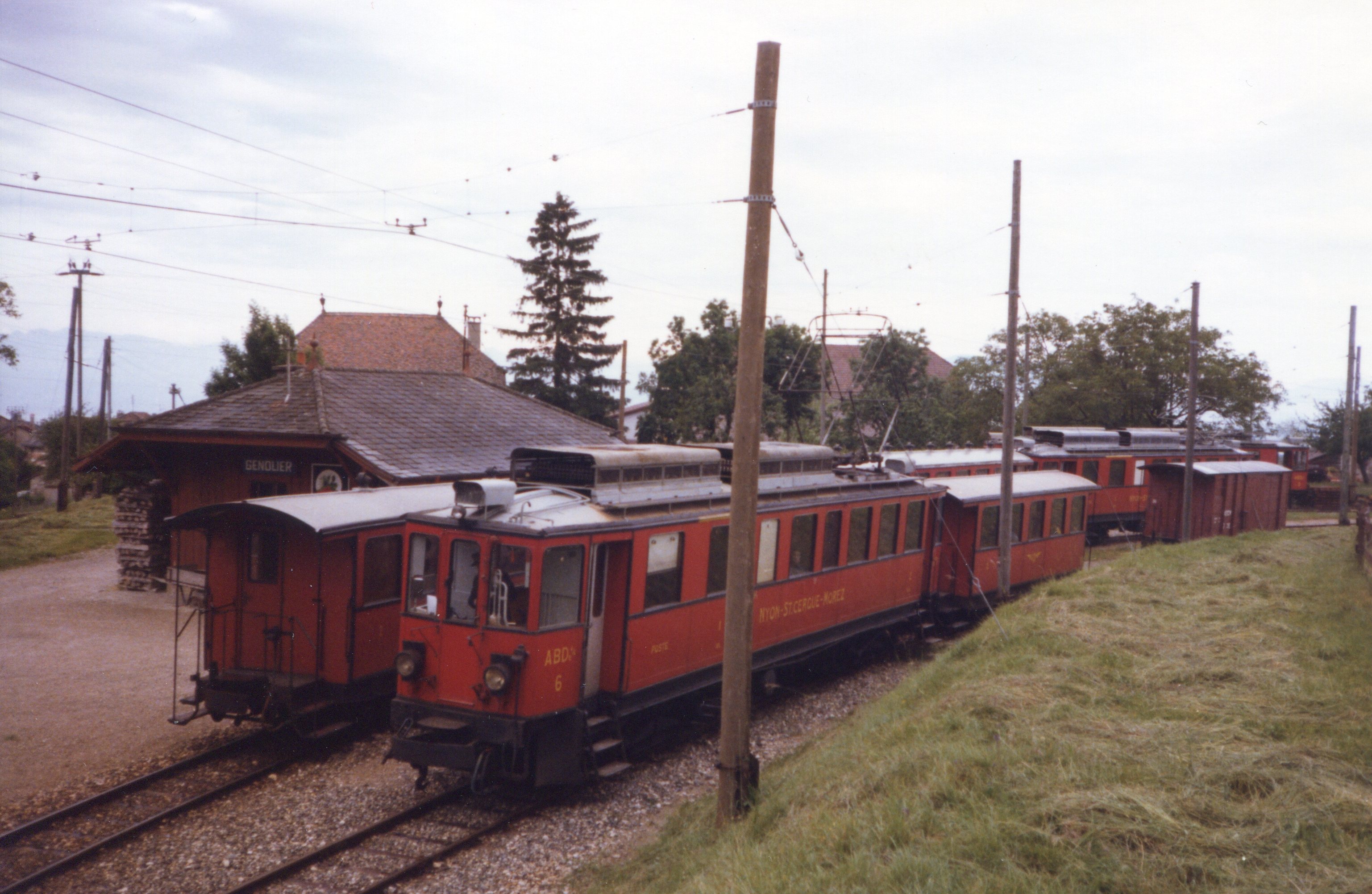 [Ligne] NyonIndex. décimale : 4341 Chemin de fer interurbain et vicinal - véhicule - service régulier, transport de voyageur Croisement de deux convois du NStCM en gare de Genolier [document graphique à deux dimensions] / Gaston Guignard, Photographe . - [S.l.] : Kodak, 1985 . - 1 photo : couleur ; 9 x 13 cm.
