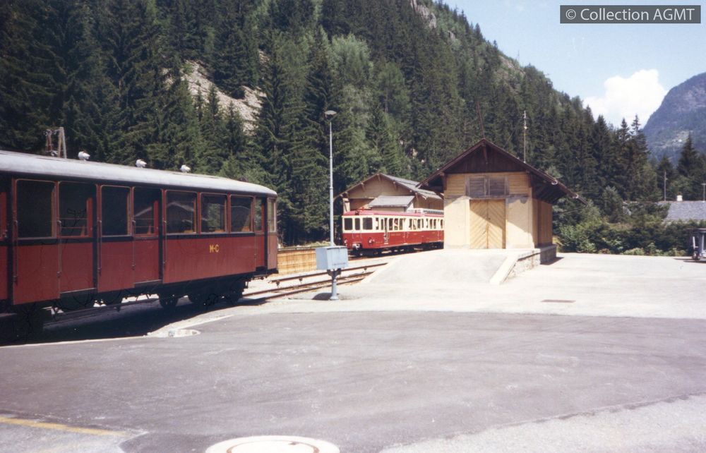 PermalinkUn convoi spécial du MC formé de l'automotrice ABDeh 4/4 14 et d'une voiture pilote attend l'heure du départ en gare du Châtelard-Frontière / Gaston Guignard