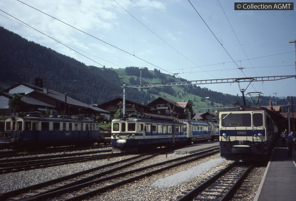 PermalinkPermalinkPermalinkPermalinkGare de Zweisimmen avec deux convois du MOB prêts au départ et le De 4/4 25 (ex-ADZe 4/4) stationné sur une voie de garage / François Chapuis