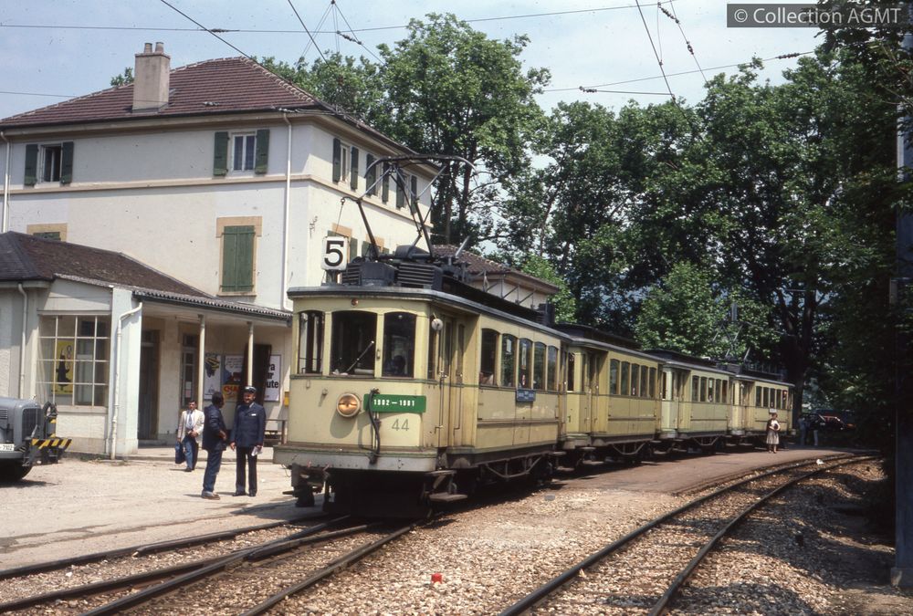PermalinkUne rame de la ligne 5 des TN, formée des automotrices 43 et 44 encadrant deux remorques assorties stationne en gare de Colombier lors des festivités du Littorail / Jeremy Wiseman