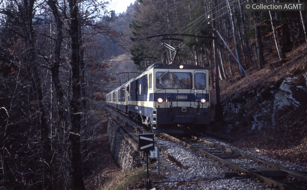 PermalinkMené par un fourgon automoteur De 4/4, série 6001-6004, une rame panoramique du MOB arrive aux Sciernes / François Chapuis