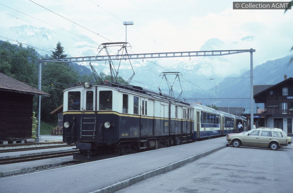 [Ligne] ZweisimmenIndex. décimale : 4341 Chemin de fer interurbain et vicinal - véhicule - service régulier, transport de voyageur Chemin de fer Montreux - Oberland-Bernois : la DZe 6/6 2002 circule en 1995 entre Zweisimmen et La Lenk en tête d'une composition comprenant la voiture légère AB 98 [document graphique à deux dimensions] / Nicolas Michel, Photographe . - Breil-sur-Roya : Les éditions du Cabri, [ca 2005] . - 1 carte postale : couleur ; 11 x 15 cm. - (Privés suisses 1; 1) .