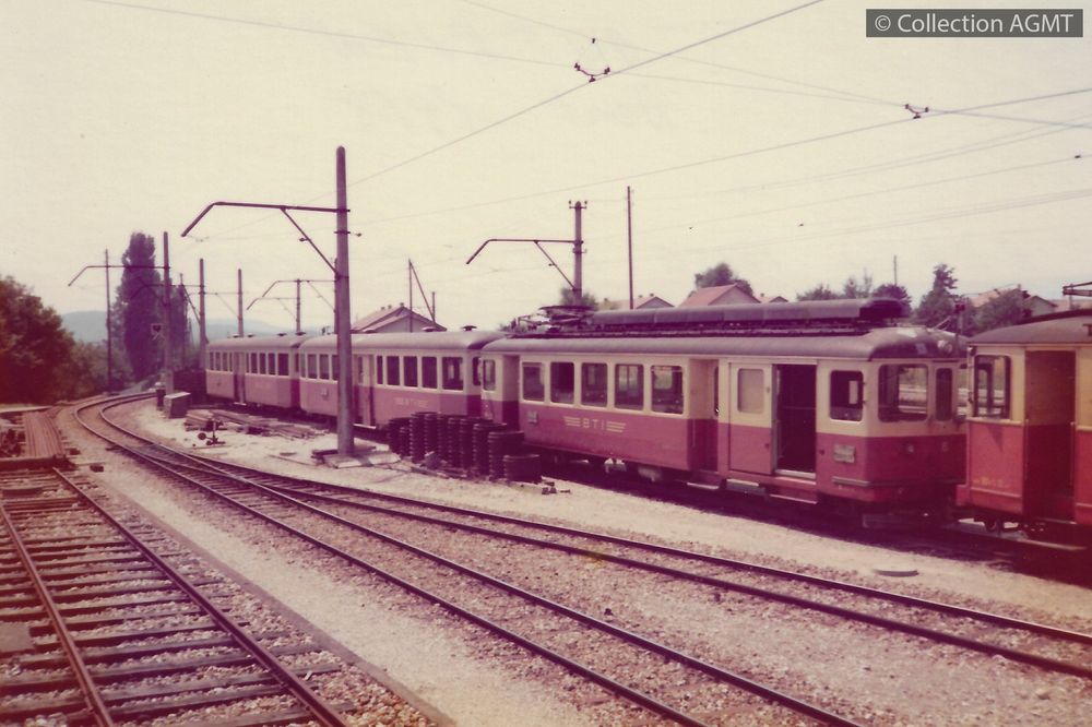 PermalinkAprès la livraison du nouveau matériel, l'automotrice BDe 4/4 6 du BTI et deux des trois voitures ex-BD, sont stationnées sur les voies de garage du dépôt de Taeuffelen / Gaston Guignard