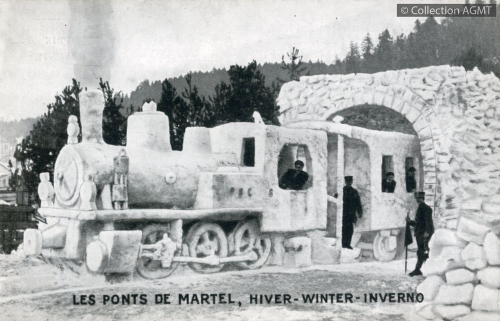 [Année] 1919Index. décimale : 4950 Compagnie de transport interurbain et vicinal (en tant qu'entité administrative) - relations avec les employés, le personnel - généralités Les Ponts de Martel : hiver = Winter = inverno [document graphique à deux dimensions] . - [S.l.] : [s.n.], [ca 1919] . - 1 carte postale : noir et blanc ; 9 x 14 cm.
