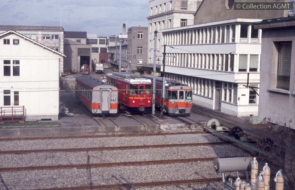 [Ligne] 256Index. décimale : 4346 Chemin de fer interurbain et vicinal - véhicule - construction, vue d’usine (voir aussi la classe 6), livraison, révision, réparation, restauration, entretien Rame réversible des GFM et automotrice BDeh 4/4 82 du BVB dans la cour des ateliers de Sécheron [document projeté ou vidéo] / Jean-Marc Bongni, Photographe . - [S.l.] : [s.n.], [ca 1976] . - 1 diapositive : couleur ; 5 x 5 cm.