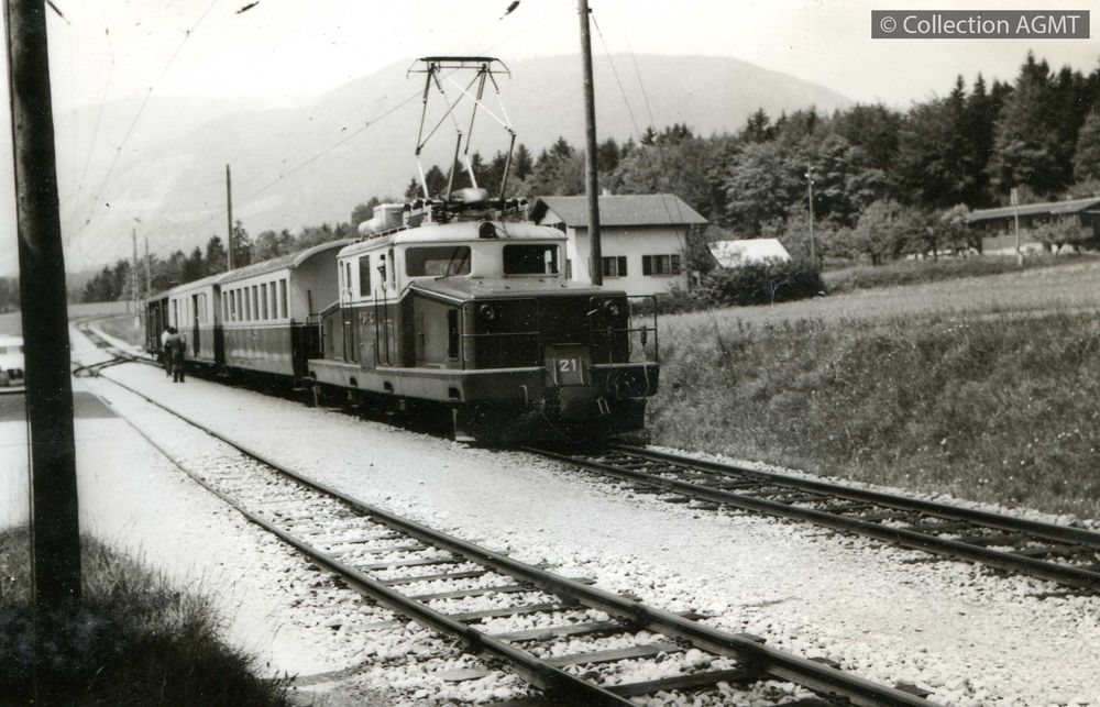 Affiner la recherche Interroger des sources externesMené par la locomotive Te 4/4 21, un convoi de l'YSteC à destination d'Yverdon marque l'arrêt en gare de Valeyres-sous-Montagny / Gaston Martin