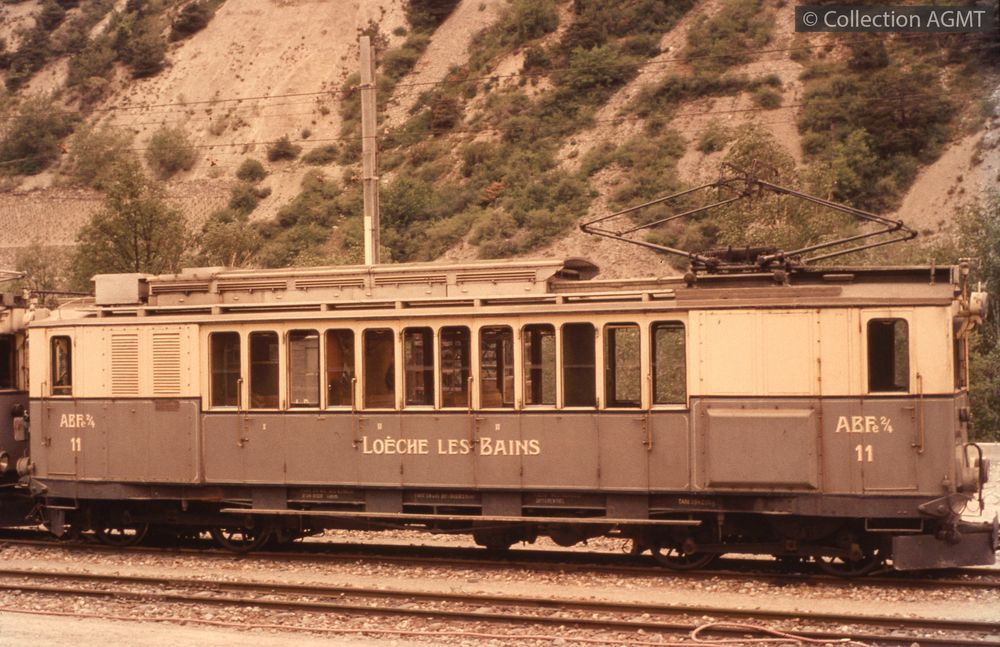 PermalinkVue en élévation de l'automotrice ABFeh 2/4 11 du LLB stationnée devant le dépôt de Loèche CFF / François Chapuis