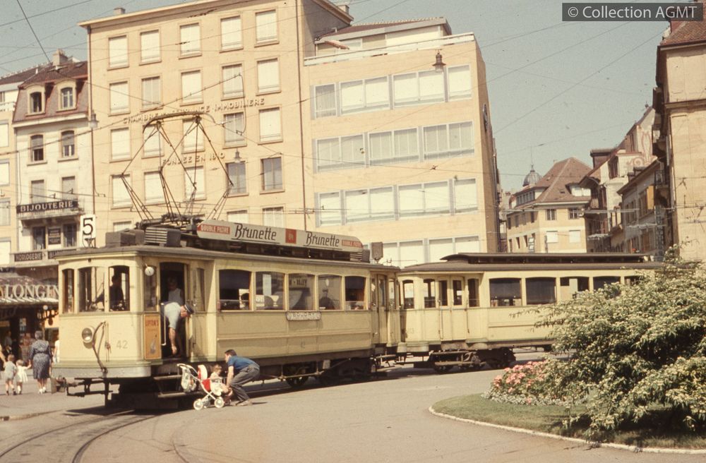 Affiner la recherche Interroger des sources externesAssurant un service direct de la ligne 5, l'automotrice 42 des TN attend ses voyageurs à la place Pury / Richard J.S. Wiseman