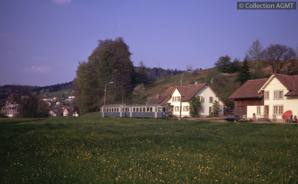 PermalinkUne rame réversible du WSB, formée d'une automotrice et d'une voiture-pilote, circule à proximité d'Hirschthal / François Chapuis