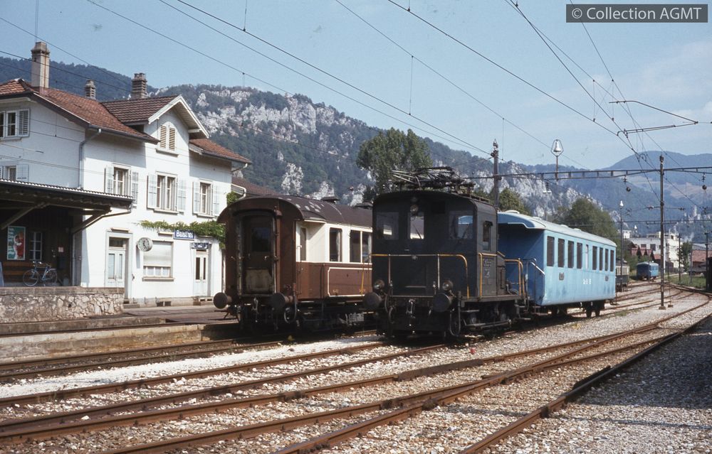 Code-barres Cote Support Localisation Section Disponibilité 6700035913 4341(494.45) LEB 1963/11 Photographie Bachet Photographies Disponible Le tracteur Te 2/2 102 de l'OeBB stationne en gare de Balsthal en compagnie de la voiture salon As 412 et d'une voiture ex-CFF Seetal, série 501-503 / Jeremy Wiseman