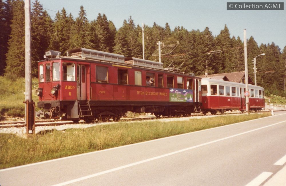PermalinkUn convoi du NStCM à destination de La Cure, formé de l'automotrice ABDe 4/4 6 et de la voiture B4 42, marque l’arrêt à La Givrine / Gaston Guignard