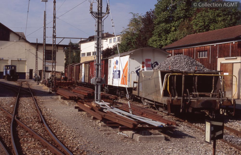 Affiner la recherche Interroger des sources externesWagon couvert Gk 530 du MOB, en livrée publicitaire "La Suisse assurances" sur une voie de garage de La Lenk / François Chapuis