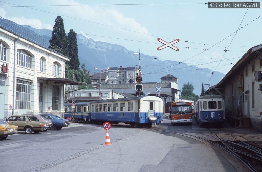 4341(494.45)_MOB_1985-03_d.jpgImage Jpeg PermalinkPermalinkPermalinkUn convoi du MOB manoeuvre en gare de Montreux, où l'automotrice Be 4/4 1001, ex-LCD, stationne sur une voie de garage / Jeremy Wiseman