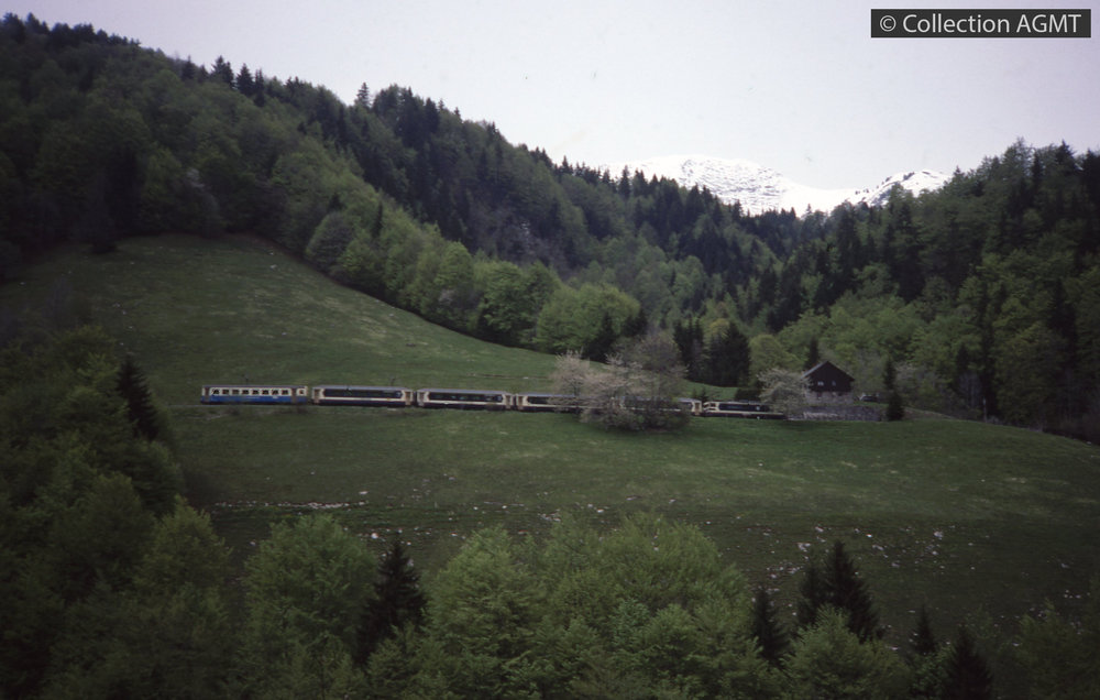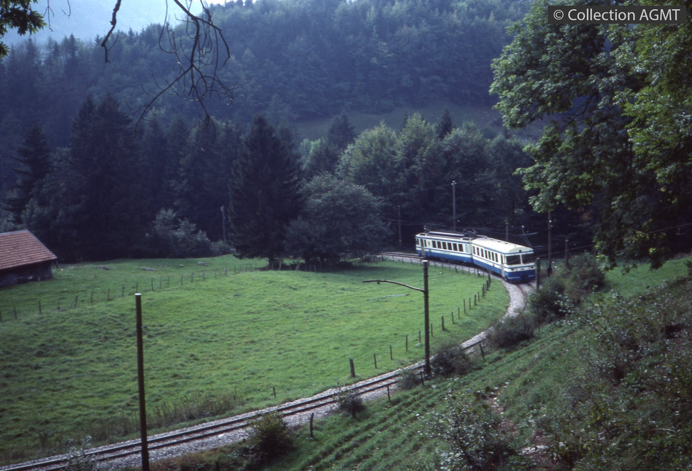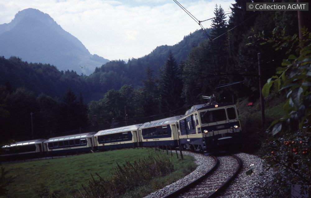 PermalinkPermalinkPermalinkRame réversible du MOB (automotrice Be 4/4, série 5001-5004 et voiture-pilote ABt4, série 5301-5304) dans la courbe des Sciernes / François Chapuis