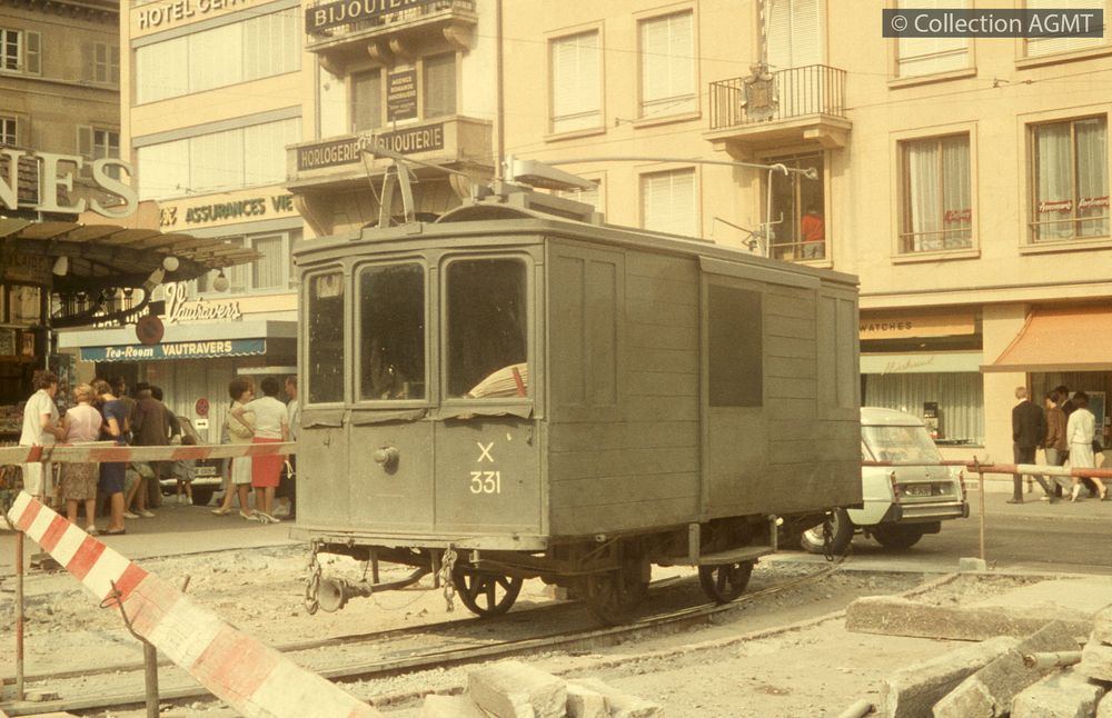 4341(494.45)_BVB_1966-04_d.jpgImage JpegLe wagon de soudure électrique X 331 des TN participe aux travaux de construction de la nouvelle boucle de rebroussement de la ligne 3 à la place Pury après la suppression de la boucle tour de ville / Richard J.S. Wiseman