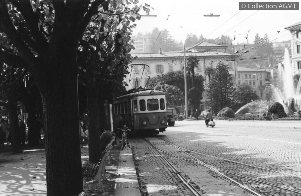 [Année] 1962Index. décimale : 4341 Chemin de fer interurbain et vicinal - véhicule - service régulier, transport de voyageur Be 4/4 10 (ex BMB) à la piazza Manzoni, à Lugano [document graphique à deux dimensions] / Michel Grandguillaume, Photographe . - Lausanne : BVA, [ca 1980] . - 1 carte postale : noir et blanc ; 11 x 15 cm. - (BVA; 64.02 LCD) .