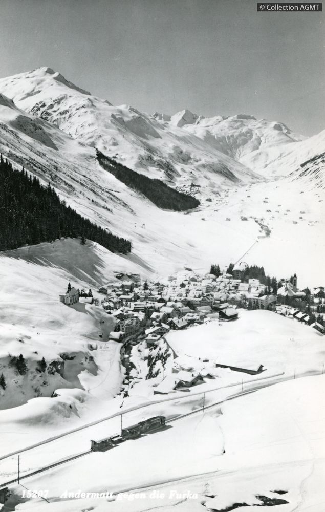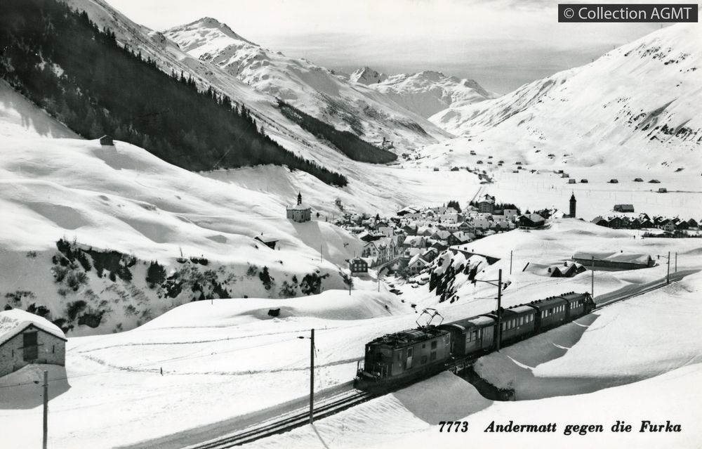 Titre : Andermatt gegen die Furka mit Furka-Oberalpbahn Type de document : document graphique à deux dimensions Auteurs : Rud. Suter, Photographe Editeur : Oberrieden-Zuerich : Rud. Suter Année de publication : [ca 1950] Collection : Rud. Suter num. 3803 Importance : 1 carte postale Présentation : noir et blanc Format : 14 x 9 cm Langues : Allemand (ger) Catégories : [Mots-clefs] 151-155