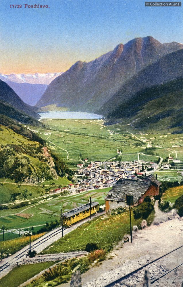 [Compagnie] BB (Grisons)Index. décimale : 4341 Chemin de fer interurbain et vicinal - véhicule - service régulier, transport de voyageur Berninabahn : Blick auf Poschiavo [document graphique à deux dimensions] . - Samedan : Engadin Press Co., [ca 1939] . - 1 carte postale : noir et blanc ; 9 x 14 cm. - (Engadin Press; 793) .